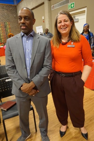 YMCA Trevor McAlmont, left with Associate Vice President Kathleen Holloway