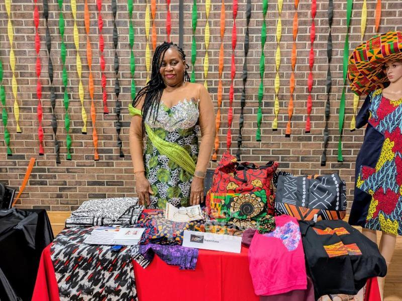 Beautifully attired women from the Cameroon demonstrate their traditional dance.