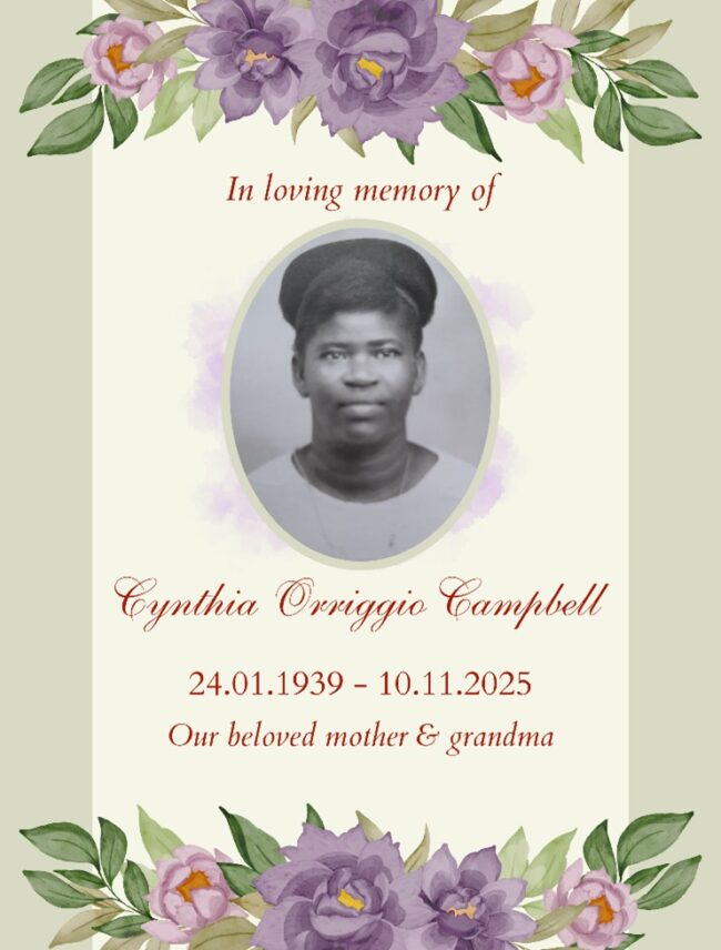 Cynthia was the proud mother of Desmond, Johnny, Kenneth, Noel, Cynthia, and Winston. Each child carries forward her lessons, her strength, and her unwavering belief in the power of hard work and self-respect.